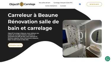 Site complet et optimisé SEO pour une entreprise spécialisée en carrelage, parquet et rénovation de salles de bain et cuisines.